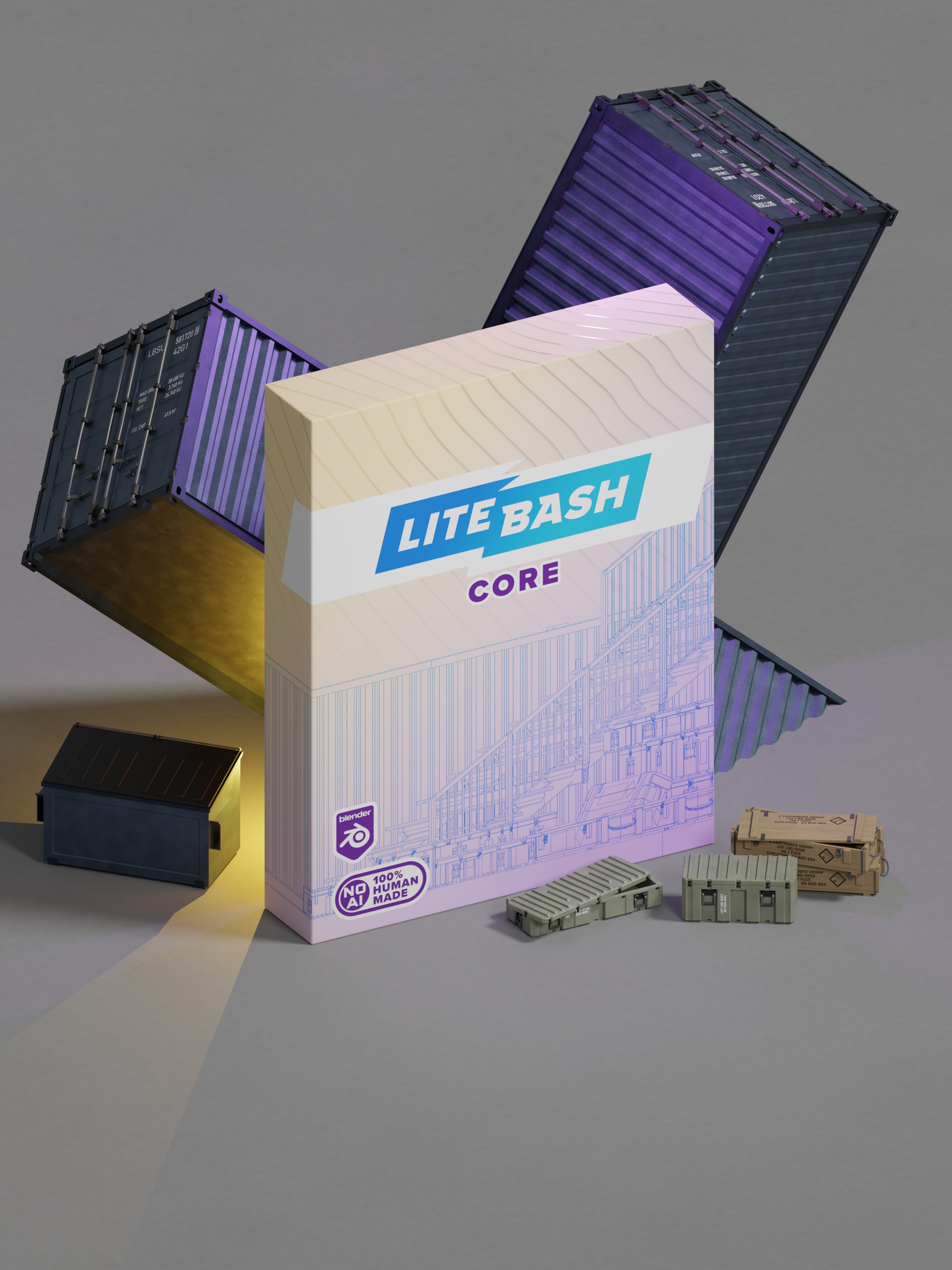 We love Blender as much as you do. Proper naming and group structure, an integrated asset library, and efficient procedural materials are all ready to drag and drop.